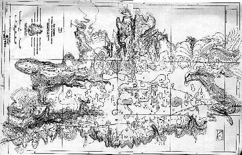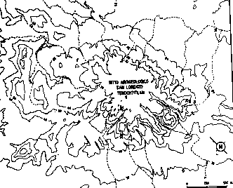 Plano topográfico de San Lorenzo, donde se aprecian las crestas que sobresalen del perfil de la meseta artificial.