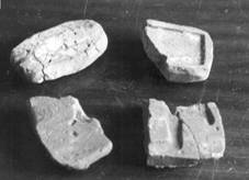 Fig. 3.- Moldes de Malimán (San Juan). Los dos de arriba de cerámica (el de la