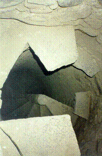 Una vez liberado el interior de la torre pudimos observar que sobre la pared interior de la torre sur del templo, se hallaban aún restos de 13 escalones, algunos empotrados, otros totalmente retirados, quedando sólo la huella, y la mayoría únicamente rotos (Figura 1).