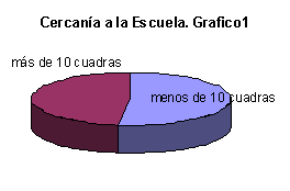 Los niños proceden de hogares con diversa situación socioeconómica y de diversos barrios de la ciudad de Rosario. Sobre el total de alumnos, el 49,26 % de los niños vive a más de 10 cuadras de la escuela (Gráfico 1).