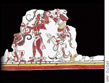 De una escena pintada en un recién descubierto mural maya en las ruinas de San Bartolo de Guatemala, datada en el año 100 dne Dibujo 1, leemos en una noticia publicada por la CNN (2002): "En lo que se puede ver de la pintura, Saturno (arqueólogo William Saturno) dijo que había una figura central masculina que parecía ser el dios maya del maíz, que lleva un taparrabos y un fabuloso pendiente. Detrás de él hay dos mujeres con el pecho al descubierto.