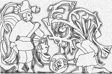 En este caso no sabríamos decir si el intérprete es el que ha forzado el lenguaje metafórico, al decir que el protagonista está esculpiendo una cabeza, y modifica el sentido que pensamos sería que decapita a un humano. O es el autor el que plasmó el mito con sentido cambiado. O somos nosotros los que no vemos la identificación exacta de: esculpir una cabeza, com una metáfora o ritual agrícola (aunque más adelante damos otra interpretación admisible). Pero una cosa dice claramente Westheim: la cabeza que tiene en sus manos el protagonista del relieve, se asocia con el maíz y el Dios que lo personifica.