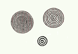 Conjunto de líneas concéntricas circulares con círculo interior excéntrico o espiral cerrada.