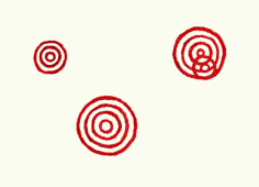 Conjunto de líneas concéntricas circulares rojas.