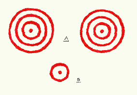 -uno de cuatro círculos rojos de 16 centímetros, que incluye a otro de dos anillos rojos concéntricos más pequeños; y