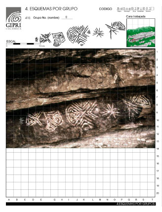 En 1970 inicia GIPRI sus investigaciones en el altiplano cundiboyacense. Sus primeros hallazgos y estudios corresponden a yacimientos con pinturas, principalmente de color rojo, en muchas de sus tonalidades. Estas primeras investigaciones luego dieron noticia de pinturas en otros colores, tales como el negro (municipios de Ramiriquí y Soacha), y naranja (Facatativá, Soacha, entre otros), que son comunes en otras regiones del país. De igual modo, con el registro sistemático de algunas otras zonas del altiplano se han venido encontrando otro tipo de manisfestaciones rupestres: petroglifos, talleres de herramientas, cúpulas y pinturas en blanco. Este es el caso del abrigo rocoso «Las Pinturas» de Pilar y Ceibita, en Sogamoso Boyacá que cuenta con un gran mural de pinturas en color blanco. Aunque «Las Pinturas» fue el primer yacimiento rupestre con este pigmento que conoció GIPRI (1989), luego pudo constatar la existencia de este tipo de pigmento en otros sitios: murales de Sáchica, Boyacá (1996); Machetá, Cundinamarca (2000); Tiribita, Cundinamarca (2001); Sutatausa, Cundinamarca (2002).