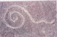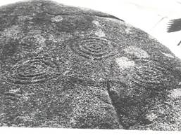 Presenta Círculos concéntricos. Dimensiones: 35 cms de diámetro. Surco: 3 cms de ancho por 0.5 de profundidad. Acanalado y una figura zoomorfa.