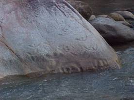 Hasta ahora sólo se ha registrado un petroglifo en avanzado estado de deterioro por erosión y meteorización. Fue registrado por primera vez por Pablo Novoa. 1998. Dimensiones: 80 cms de alto por 3.80 de largo y 1.30 cms de ancho, de forma alargada. Está glifado por tres caras.