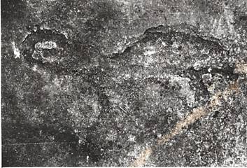 En el plano medio en el extremo izquierdo presenta una figura alada. Dimensiones: 30 cms. de ancho por 9 cms. de alto. Surco: 4 cms por 1 cm de profundidad. En el plano central presenta una figura zoomorfa con cola. Dimensiones: 1 mt. de alto por 44 cms. de ancho. Surco: 4 cms. de por 1 cm. de profundidad. Semiacanalado.